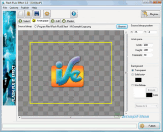 Flash Fluid Effect enables you to convert an image (e.g a logo or photo) to SWF format and apply one of 12 Macromedia flash animation effect such as melt, vaporize, warp, blur, chaos and others. You can customize the effect by adjusting some parameters, preview the animation, and publish the result as SWF file with optional HTML code. No Flash scripting required.